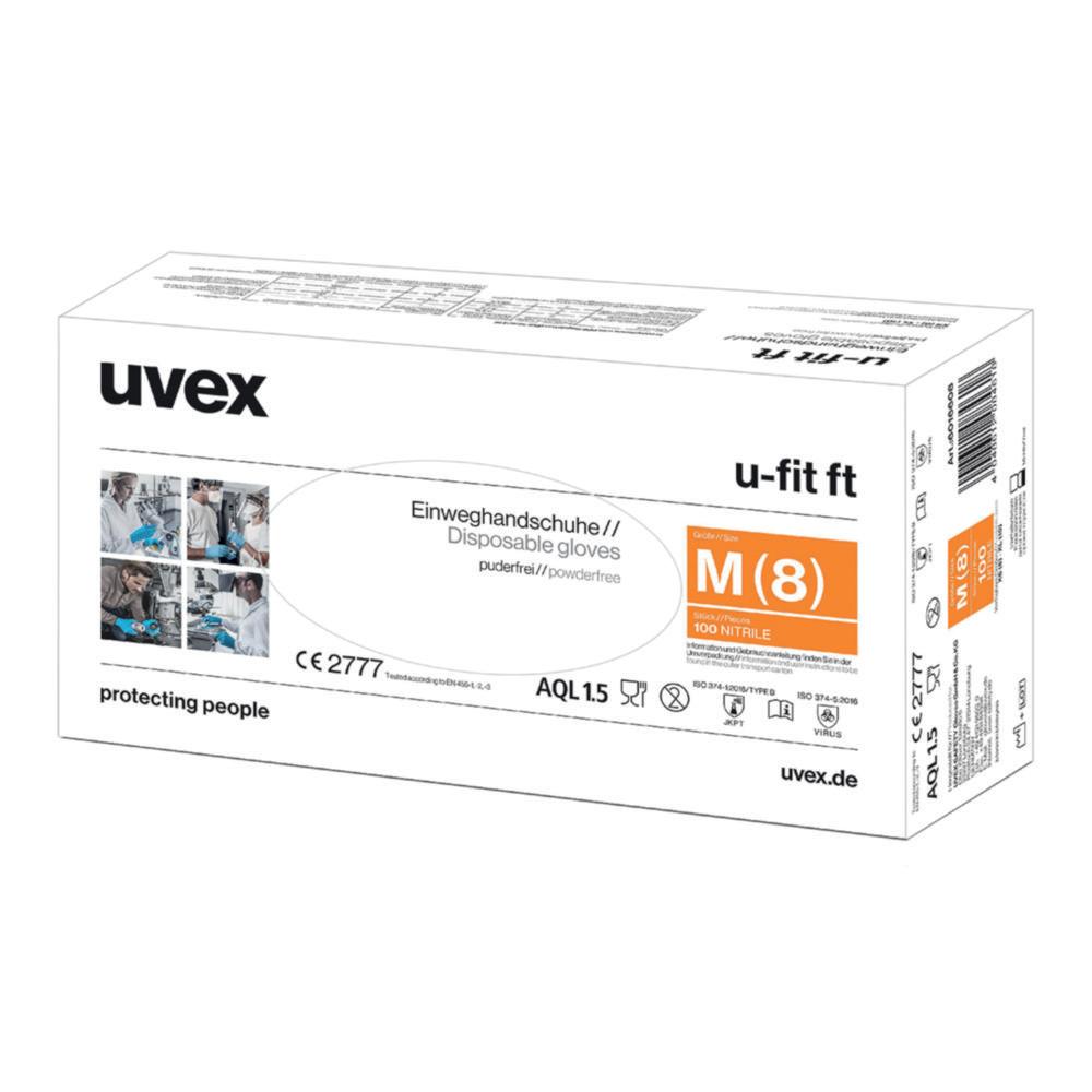 Uvex Disposable Protective Gloves U-Fit FT Size S, Nitrile, Fingertips Roughened, Powder-Free, Pack of 100