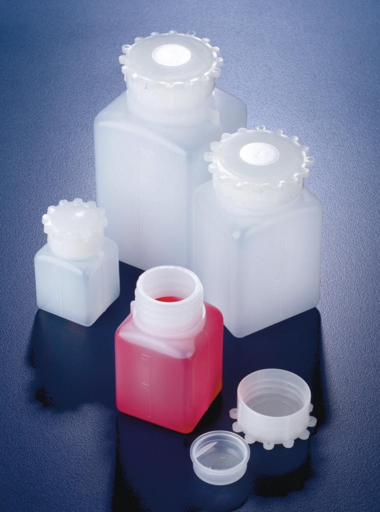 The DWK Square Bottle with Lid is designed for the storage of liquids and solids in laboratory environments. Manufactured from high-density polyethene (HDPE), this 500 mL bottle offers excellent chemical resistance and durability. Its square design ensures space-efficient storage, and the included screw cap with plug seal provides a tamper-evident and secure closure. Moulded graduations on the bottle allow for approximate volume measurement, enhancing its utility in various laboratory applications.