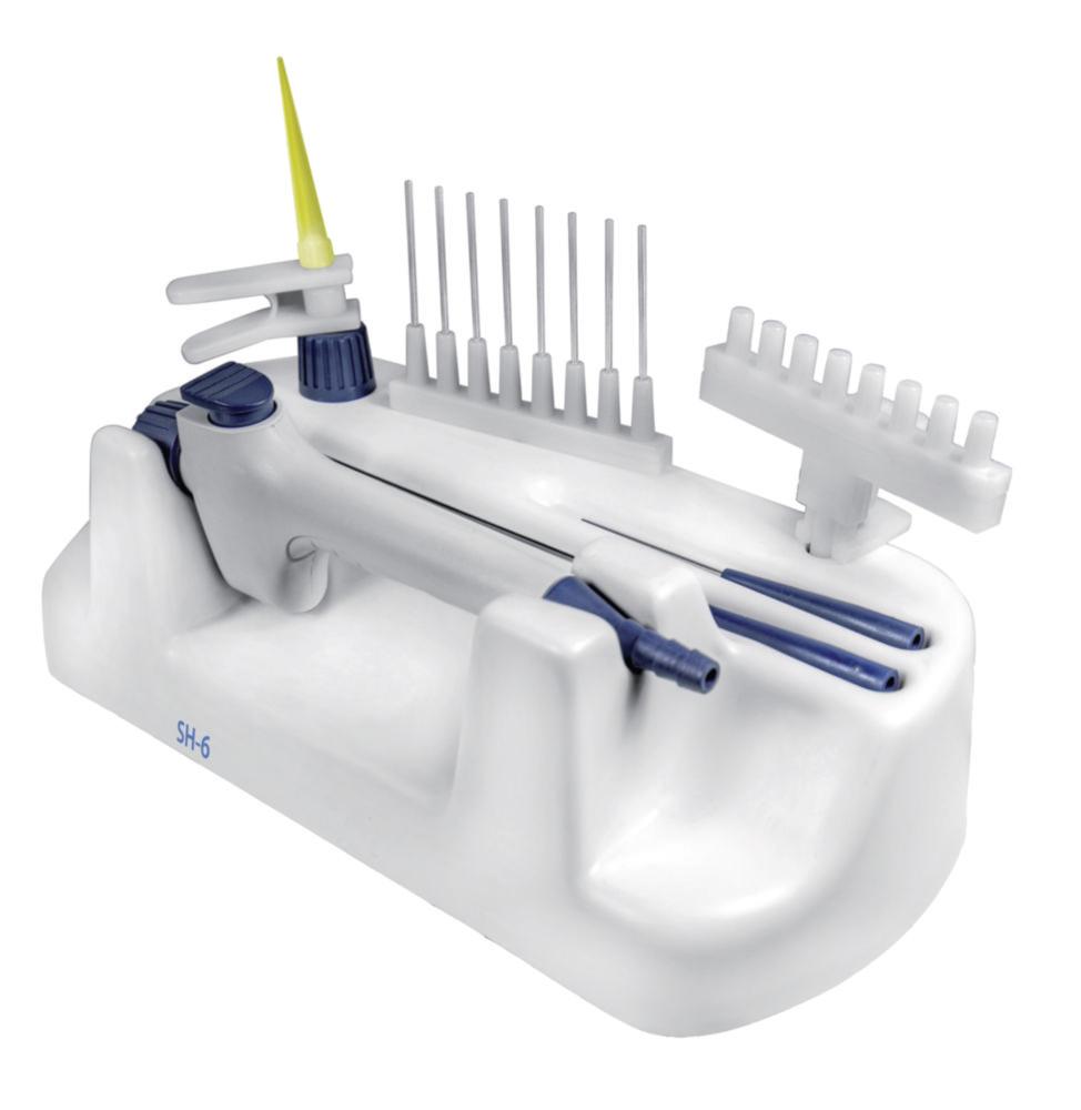 • HAS-1: Handheld vacuum controller, 1-channel adapter (with ejector) for 200 µl tips, 1-channel adapter with 125 mm stainless steel pin, 1-channel adapter with 40 mm stainless steel pin, 8-channel adapter (with ejector) for 200 µl tips, 8-channel adapter with 35 mm stainless steel pin, SH-6 stand