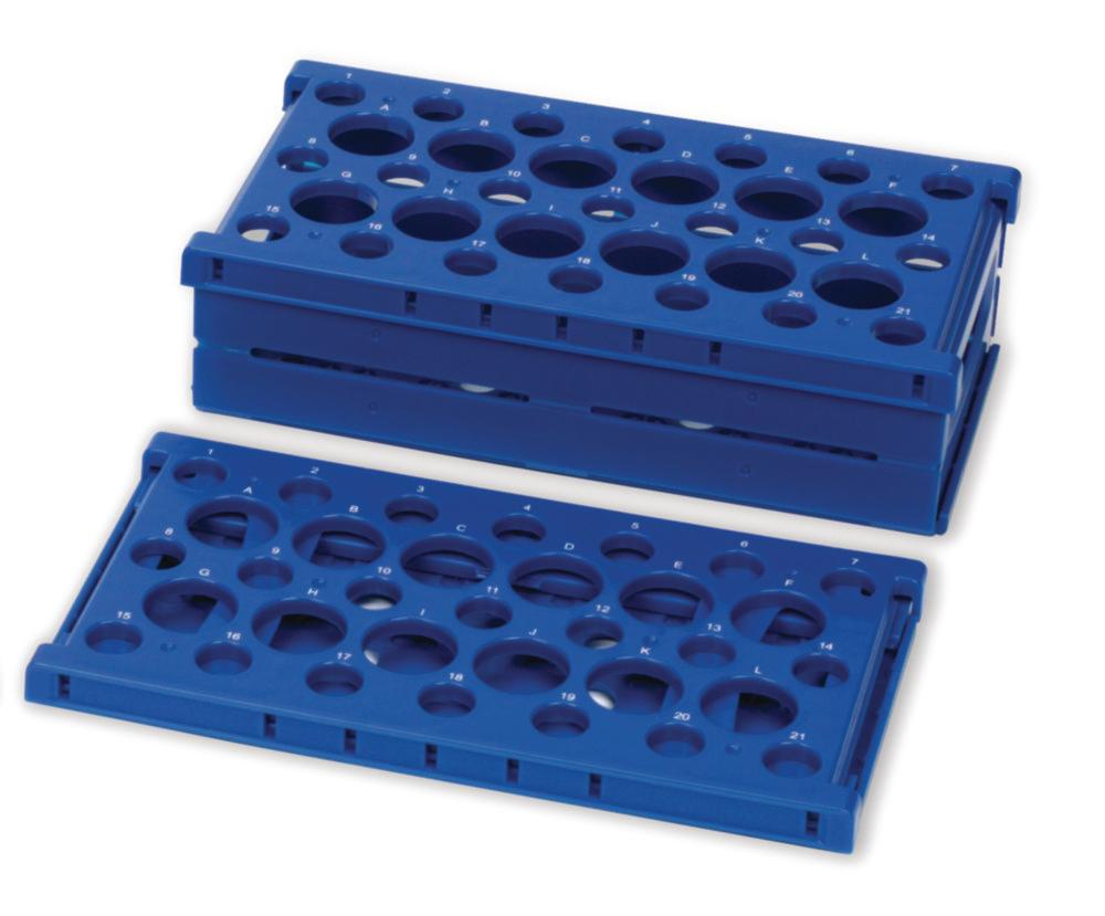Heathrow Scientific Tube Racks Pop-Up, PP, Foldable for 21×15mL / 12×50mL Tubes, Blue, Pack of 2