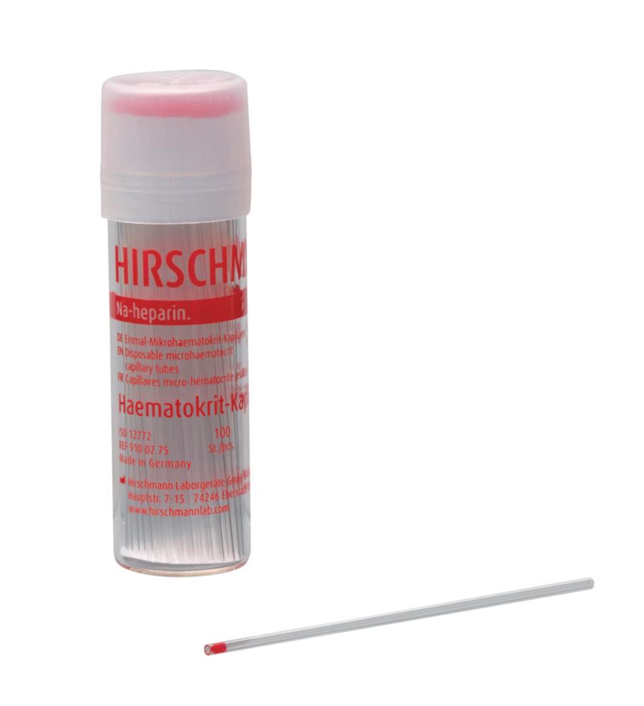 Hirschmann Laborgeräte Haematocrit Capillaries 75 µL, Single-Use, Na-Heparinized, Pack of 10 x 100