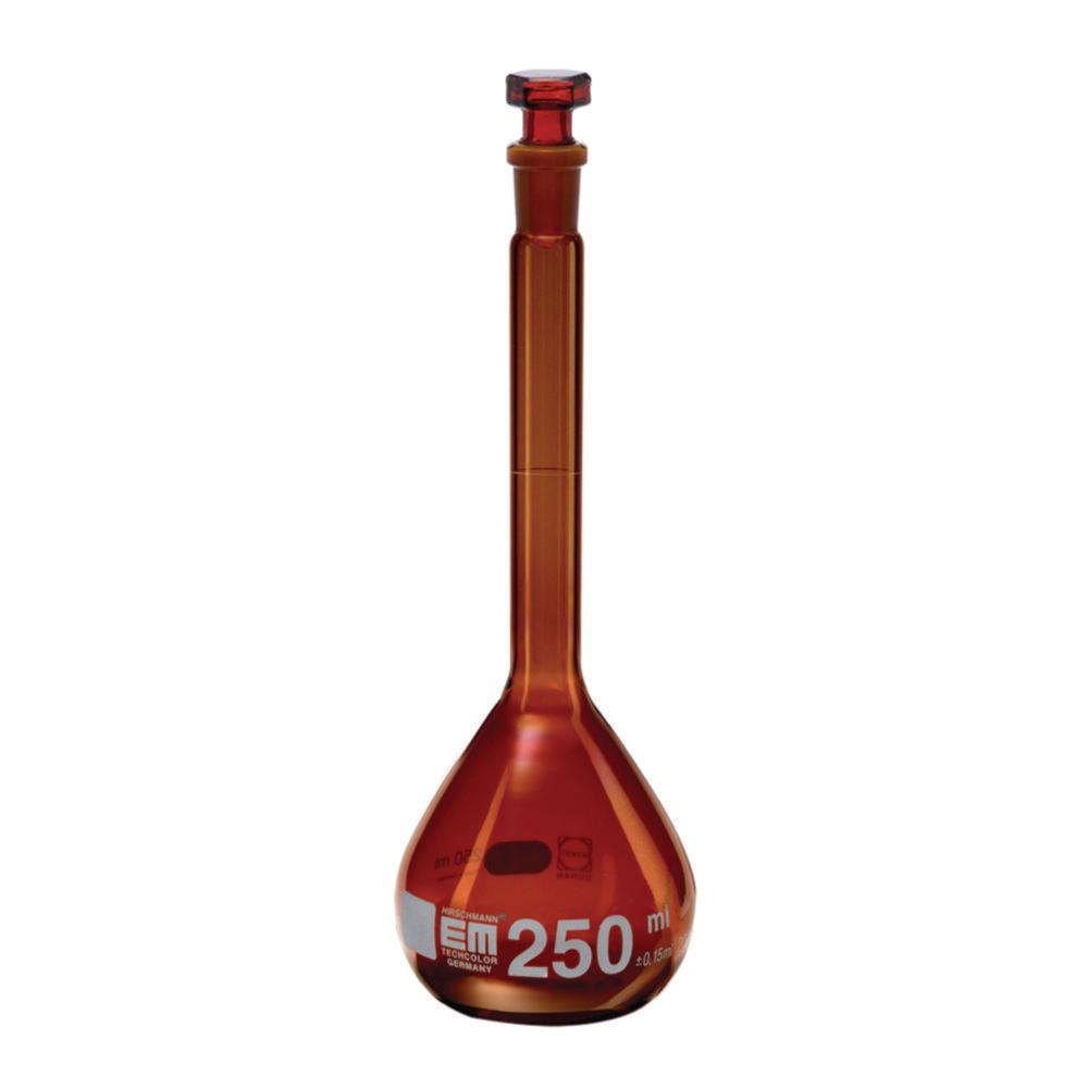 Hirschmann Laborgeräte Volumetric Flask 10mL, DURAN cl.A NS 7/16 Amber with Glass Stopper