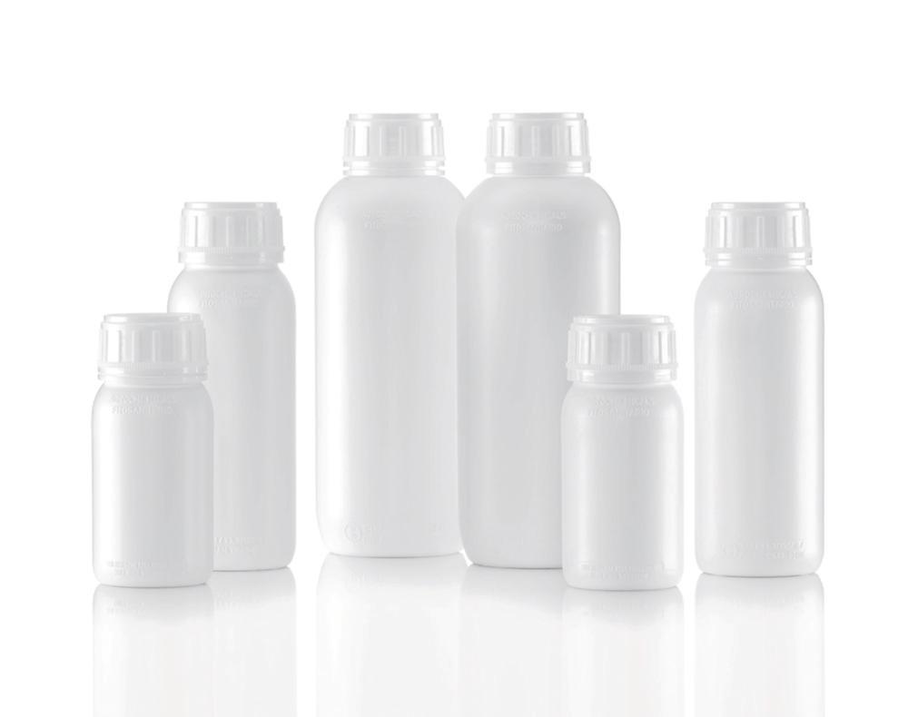 The Kautex VarioPack Dual Round Bottle 500 mL offers durable storage with advanced barrier protection, ideal for volatile or oxygen-sensitive liquids. Made from HDPE with an integrated PA (polyamide) barrier layer, it effectively limits gas diffusion. The high-quality white screw cap ensures a secure seal, providing reliable containment for demanding laboratory and industrial applications.