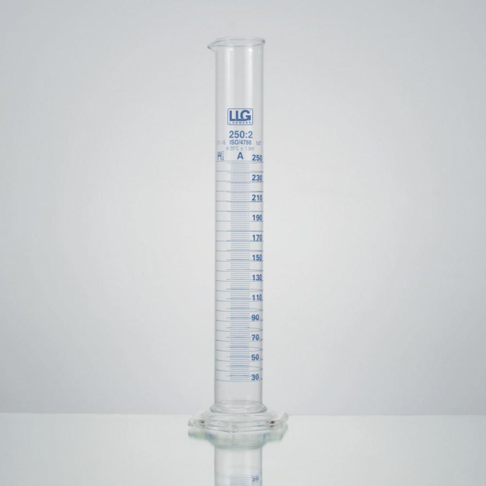 The LLG Measuring Cylinder 25 mL Tall Form is made from durable Boro 3.3 glass, offering superior chemical resistance and thermal stability. Certified as Class A, it ensures high precision and reliability for laboratory measurements. The tall form design reduces the meniscus effect, enhancing accuracy, while the blue scale ensures easy readability. The Boro 3.3 base provides additional stability, making it an ideal choice for small to medium-volume liquid handling in chemical, pharmaceutical, and educational laboratories.