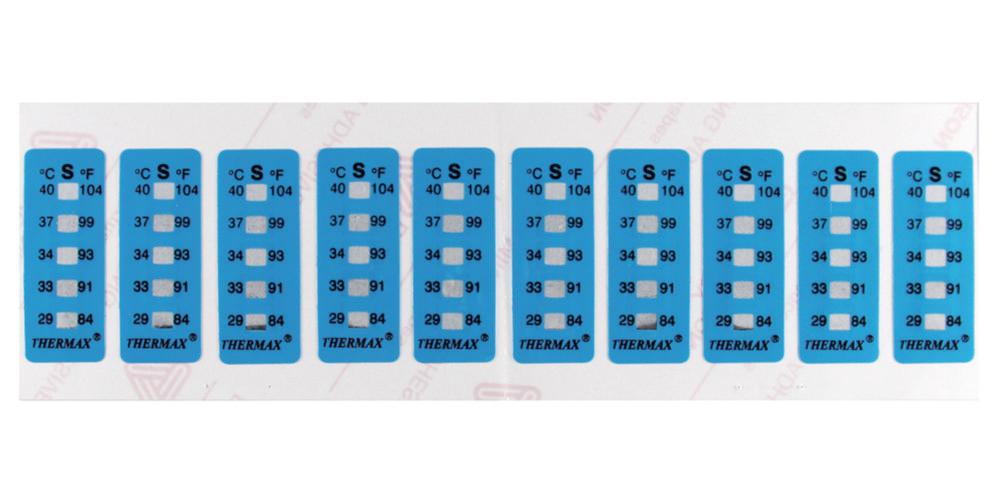 Temperature recording strips, 35 x 15 mm range +29° - +40°C,pack of 10